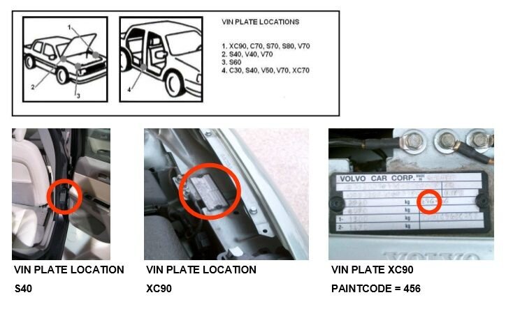 Pri vozidlách Volvo nájdete kód farby v motorovom priestore na kovovom alebo papierovom štítku, ktorý sa môže nachádzať aj na strane spolujazdca alebo vodiča na zadných dverách.