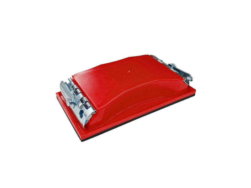 Brúsny blok je vyrobený z kvalitného plastu. Na spodnej strane je špeciálna odolná guma na jednoduché kopírovanie nerovných tvarov. Samotnýbrúsny papier sa k brúske pripevňuje pomocou dvojice kvalitných kovových svoriek, ktoré ho pevne držia na mieste.