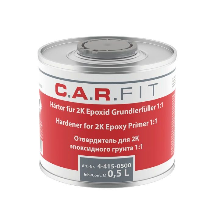 C.A.R.Fit 2K Epoxy Primer 1:1.Obsahuje: xylén, 4,4'-izopropylidén difenol, oligomérne reakčné produkty s 1-chlór-2,3-epoxypropánom, etylbenzén, bután-1-ol n-butanol.nebezpečnosť.len na profesionálne použitie. Horľavá kvapalina a pary. môže spôsobiť smrť pri požití a vniknutí do dýchacích ciest. dráždi pokožku. môže spôsobiť alergickú kožnú reakciu. spôsobuje vážne poškodenie očí. môže spôsobiť podráždenie dýchacích ciest. môže spôsobiť poškodenie orgánov pri dlhodobej alebo opakovanej expozícii. škodlivý pre vodné organizmy, s dlhodobými účinkami. môže spôsobiť poškodenie orgánov pri dlhodobej alebo opakovanej expozícii. Ak je potrebná lekárska pomoc, majte po ruke obal alebo etiketu výrobku. Používajte ochranné rukavice/ochranný odev. Ak sa necítite dobre, zavolajte TOXIKOLOGICKÉ INFORMAČNÉ CENTRUM/lekárnika. v prípade poranenia očí: Niekoľko minút opatrne vyplachujte vodou. Vyberte kontaktné šošovky, ak sú v nich a ak sa dajú ľahko vybrať. Pokračujte vo vyplachovaní. Uchovávajte mimo dosahu detí. Obsah/obal zlikvidujte odovzdaním osobe oprávnenej na likvidáciu odpadu.