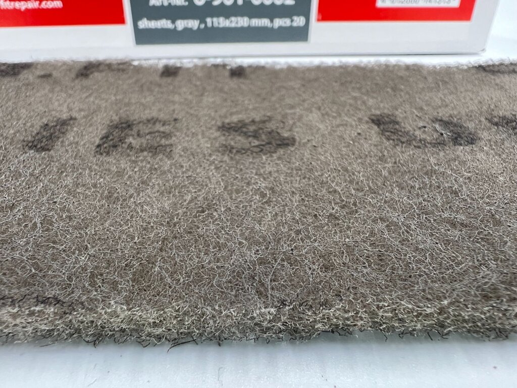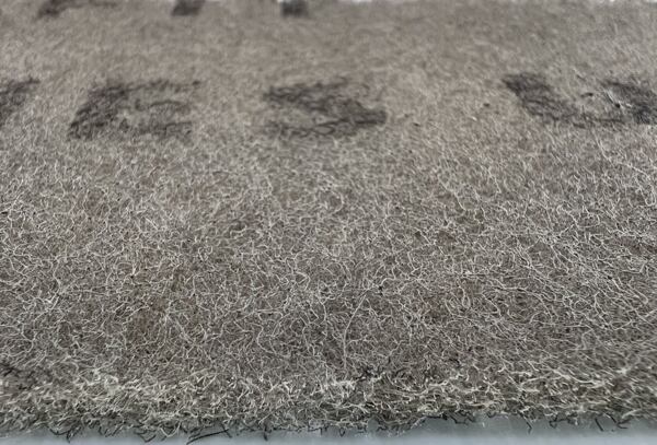 Nylonové vlákno s impregnáciou syntetickým kaučukom = špeciálna štruktúra syntetických vlákien obsahujúcich brúsne zrná fixované v živici. Zrnárovnomerne rozptýlené na povrchu tkaniny, čím sa dosiahne rovnomerne obrúsený povrch. Minimálne znečistenie, vysoká odolnosť a predĺžená životnosť. Vhodné na mokré aj suché brúsenie. Veľkosť vlákna je 115x230 mm.