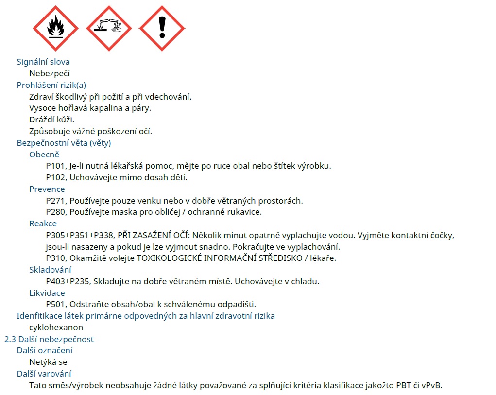 Flam. Liq. 2; H225, Vysoko horľavá kvapalina a pary.