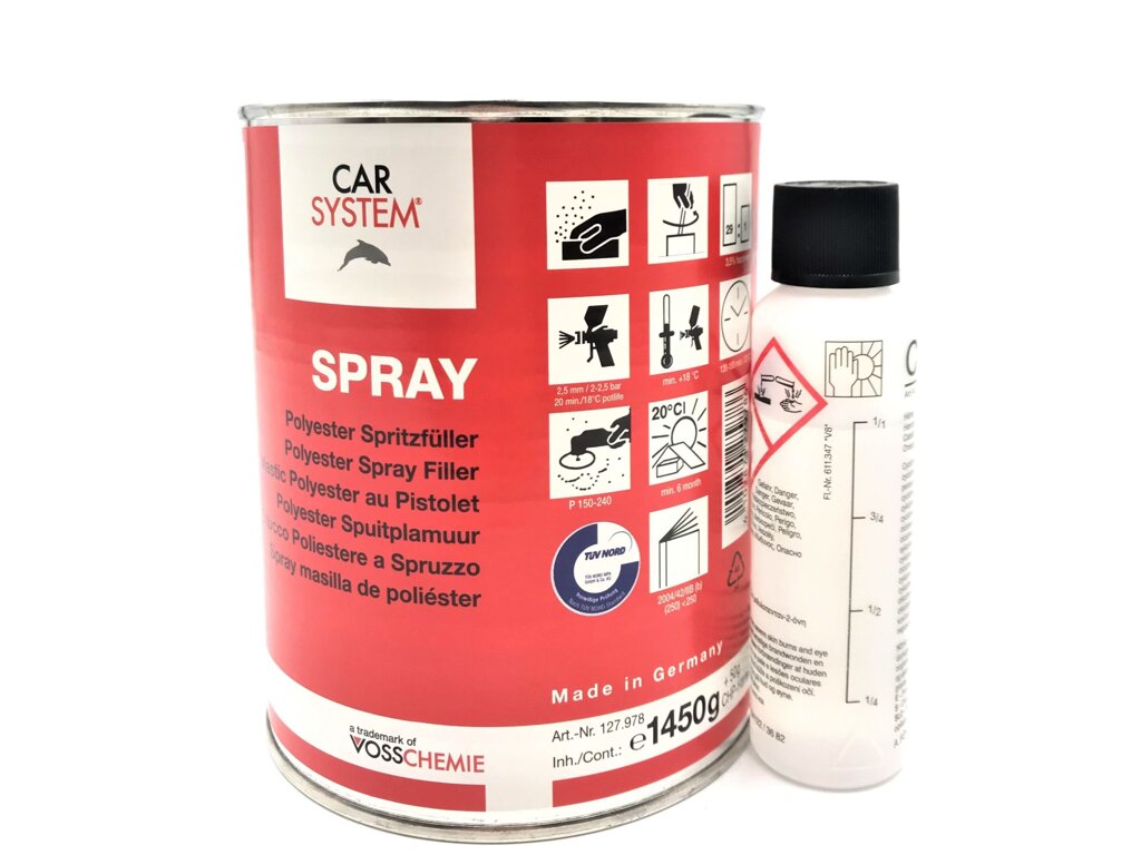na báze polyesterovej živice je vhodný na vyplnenie nerovností, otieranín a drobných poškodení na karosérii a konštrukčných častiach vozidla. Vyznačuje sa hladkým povrchom (po zaschnutí) bez pórov, ľahko sa brúsi a rýchlo schne. Izoluje základné a akrylové farby od polyesterových tmelov. Tmel v spreji sa používa na vytvorenie rovnomerných vrstiev pri opravách väčších plôch (napr. kapoty, strechy atď.).