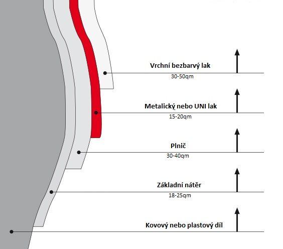 Na obrázku vidíte, z čoho sa skladá bežne lakovaná časť auta bez opráv:
