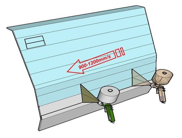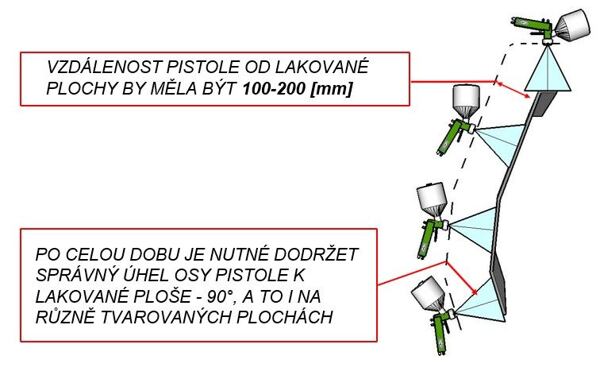 Vždy však treba dbať na uhly pištole vzhľadom na lakovanú plochu, vzdialenosť, rýchlosť jednotlivých ťahov a symetrické prekrývanie jednotlivých ťahov.