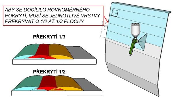 Prekrytie vrstiev by malo byť tiež rovnomerné a každá ďalšia vrstva by mala prekrývať už nanesenú vrstvu o jednu tretinu až jednu polovicu plochy nástreku.