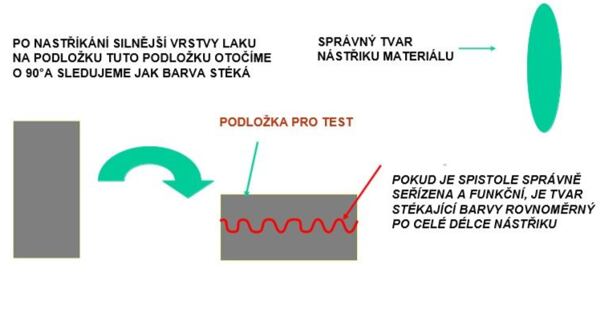 Ak farba tečie rovnomerne po celej skúšobnej striekacej ploche, pištoľ bude nanášať rovnaké množstvo farby a jej hlavné komponenty nebudú poškodené alebo upchaté.