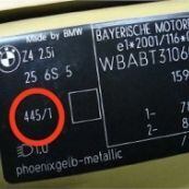 Štítok s kódom farby na karosérii BMW