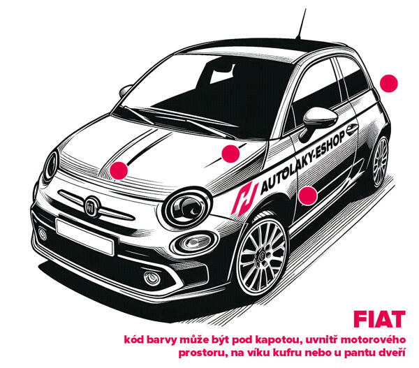 Na vozidlách Fiat nájdete štítok s kódom farby pod kapotou, v motorovom priestore, na veku batožinového priestoru alebo pri závese predných dverí.