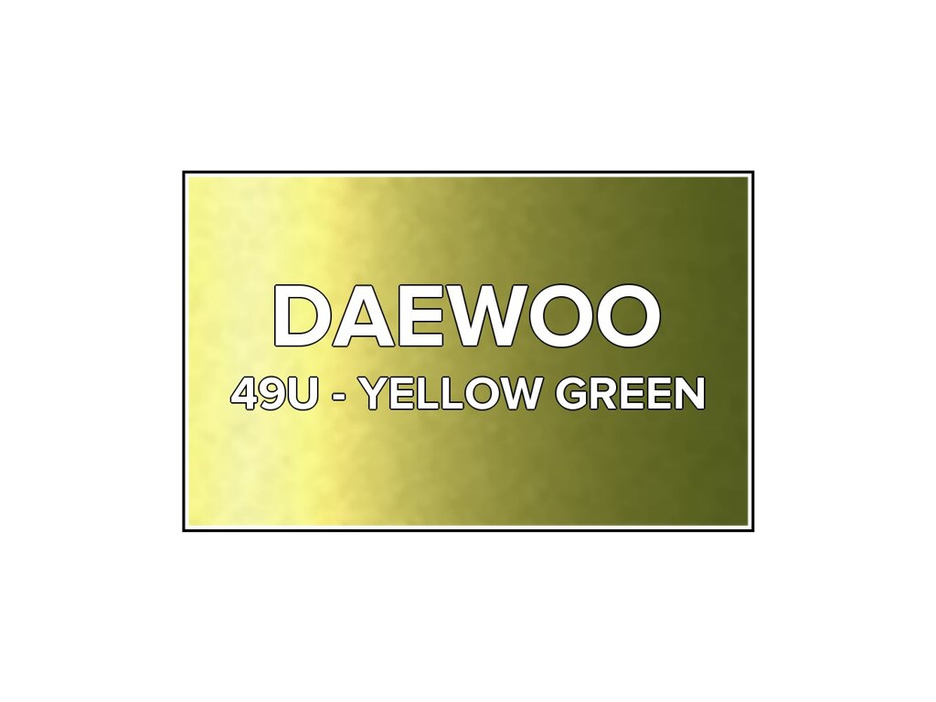 Přečíst článekZelená metalíza Daewoo 49U žltozelená v 400 ml spreji. Farba ŽLTOZELENÁ presne zodpovedá autolaku 49U, ktorý sa používal na vozidlách Daewoo v rokoch 2001-2006. Farba na všetky povrchy, jednoduchá aplikácia, 100% krytie.