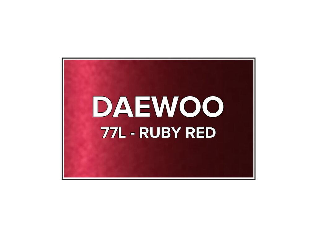Přečíst článekFialová metalická farba v spreji Daewoo 77L Rubínovo červená s objemom 400 ml. Farba RUBY RED presne zodpovedá farbe 77L používanej na vozidlách Daewoo v rokoch 1993-2002. Farba na všetky povrchy, jednoduchá aplikácia, 100% krytie.