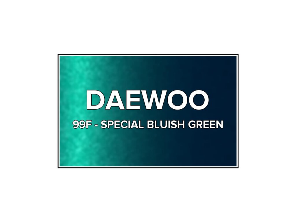 Přečíst článekZelená metalíza Daewoo 99F Special Bluish Green v 400 ml spreji. Farba SPECIAL BLUISH GREEN presne zodpovedá autolaku 99F, ktorý sa používal na vozidlách Daewoo v roku 2004. Farba na všetky povrchy, jednoduchá aplikácia, 100% krytie.