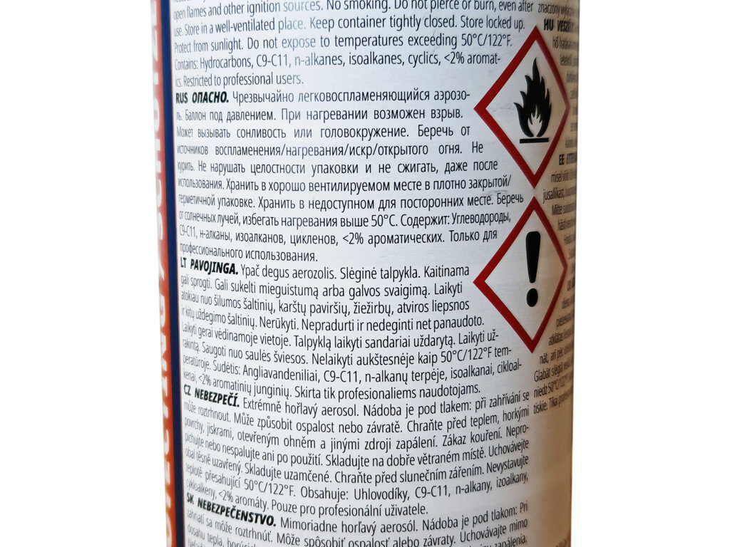 Dinitrol Metallic sprej sa musí pred použitím dobre pretrepať a pracovať, kým sa neuvoľní vložená miešacia guľôčka. Potom je potrebné sprej chvíľu pretrepať.
