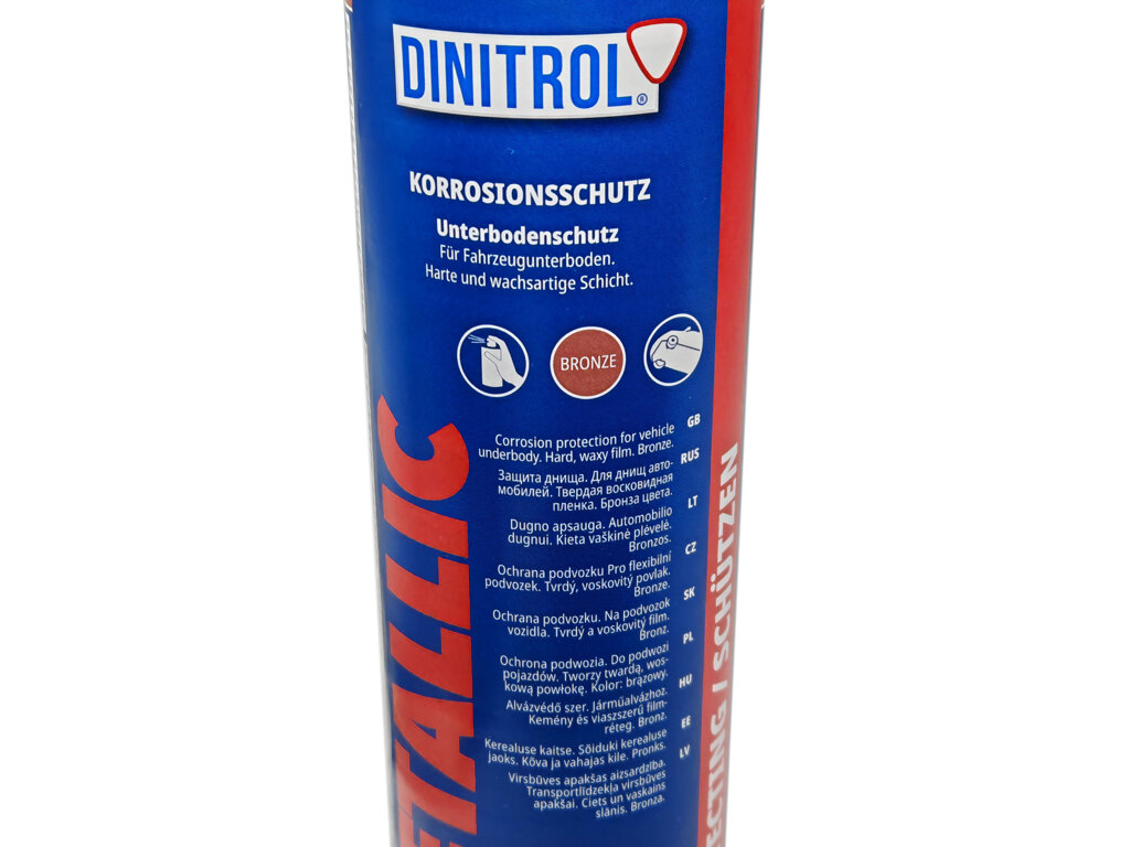 DINITROL METALLIC je výrobok určený na ošetrenie podvozkov vozidiel počas výroby, u dovozcov a v popredajnom servise. Dinitrol dobre priľne k lakovaným povrchom aj k povrchom potiahnutým PVC alebo podobným materiálom. DINITROL METALLIC je veľmi vhodný aj ako ochrana proti korózii počas prepravy a skladovania v extrémnych podmienkach. Výsledný povrch nie je možné prelakovať.