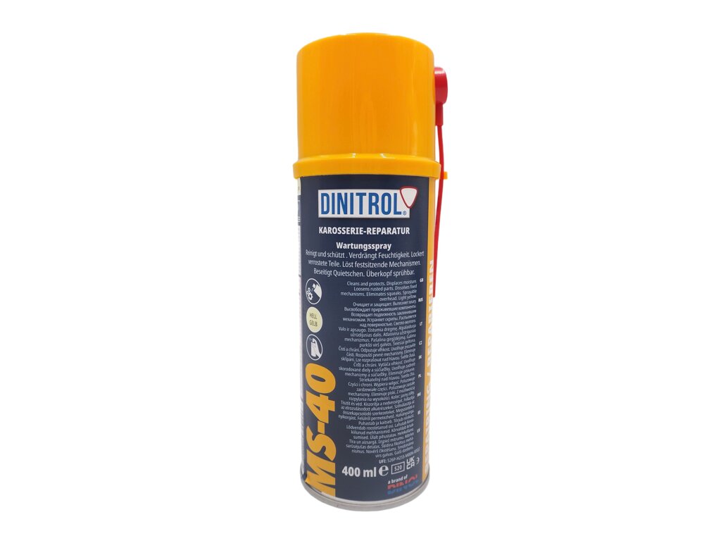 DINITROL MS-40 chráni kovy (oceľ, hliník, mosadz, striebro, cín a iné) pred koróziou, špinou, vodou a odtlačkami prstov.