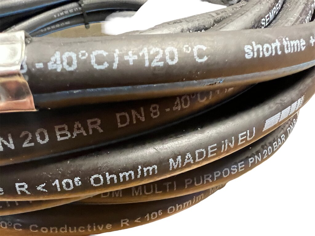 Prevádzková teplota -40 °C až +120 °C. Maximálny tlak 20 bar v závislosti od teploty. Vonkajší priemer 15 mm, vnútorný priemer 8 mm, dĺžka 15 m. Hadica je vybavená rýchlospojkami.