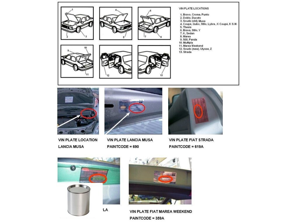 Môže sa stať, že z nejakého dôvodu farebný štítok chýba, v takom prípade sa môžete jednoducho telefonicky obrátiť na ktoréhokoľvek predajcu Fiat alebo autorizovaný servis, kde vám bezplatne poskytnú kód farby podľa čísla VIN.