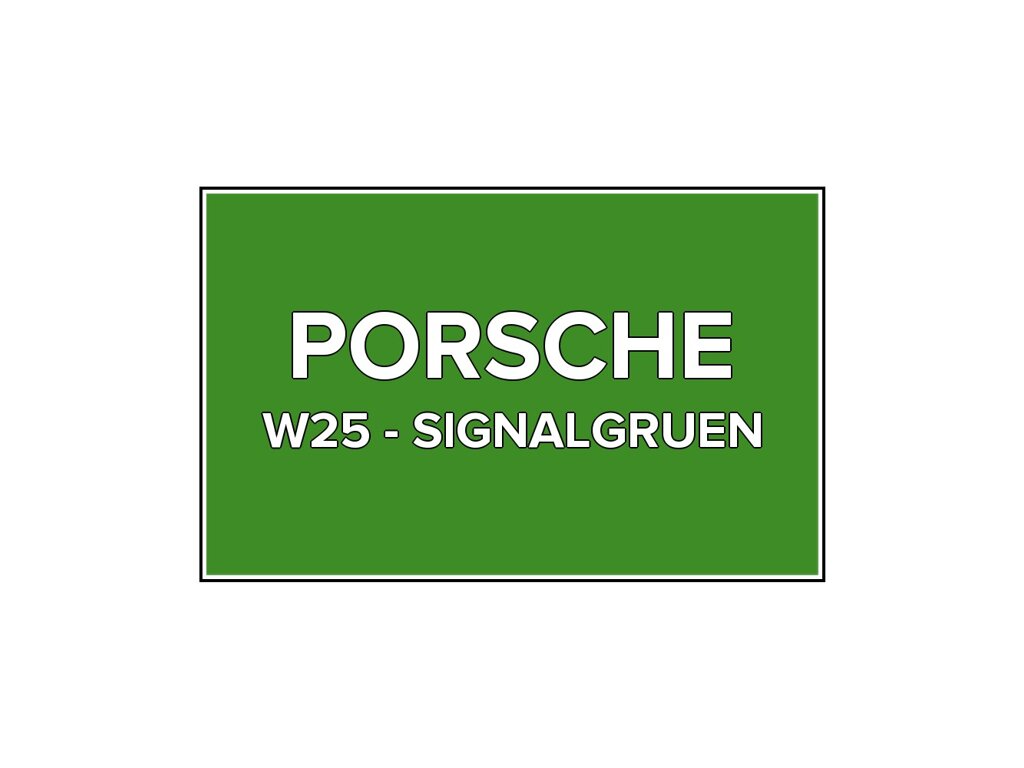 Přečíst článekZelená farba na pištole Porsche W25 Signalgruen v 100 ml balení. Farba SIGNALGRUEN presne zodpovedá autolaku W25, ktorý sa používal na vozidlách Porsche v roku 2004. Farba na všetky povrchy, jednoduchá aplikácia, 100 % krytie.