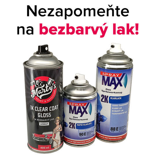 TIP: Na dosiahnutie maximálneho lesku a trvanlivosti je potrebnémetalické farby následne prelakovať bezfarebným lakom . Preto odporúčame na metalické a perleťové farby naniesť jeden z týchto vysokokvalitných bezfarebných lakov, napríklad Marty's, 2K SprayMax alebo 2K SprayMax rýchloschnúci.
