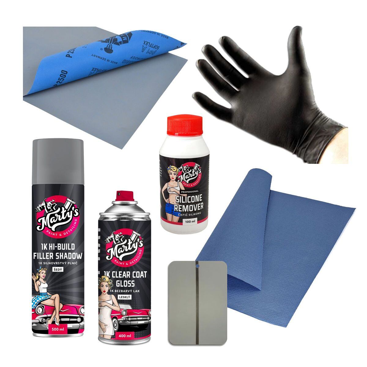 Okrem namiešaných odtieňov ponúkame aj ďalšie vysokokvalitné autolakovacie výrobky pod značkou Marty's, ako sú bezfarebné laky, riedidlá, čistiace prostriedky, brúsne prostriedky, prostriedky na starostlivosť o vozidlo a detailig. Tieto výrobky získavame od starostlivo vybraných medzinárodných dodávateľov, ktorí dokážu splniť naše vysoké požiadavky na kvalitu.