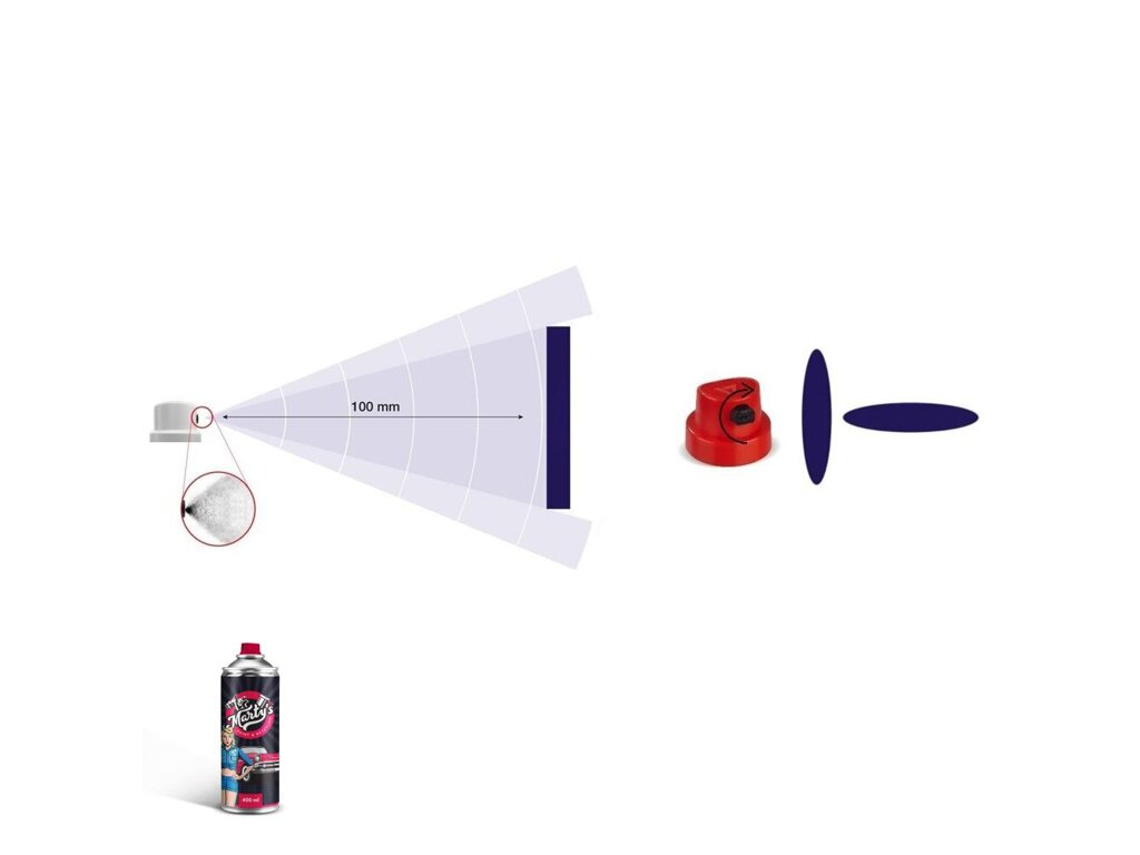 Naše spreje sú vybavené špeciálnou variabilnou tryskou, ktorá umožňuje nastaviť trojuholníkový rozprašovač farby do akejkoľvek horizontálnej alebo vertikálnej polohy.