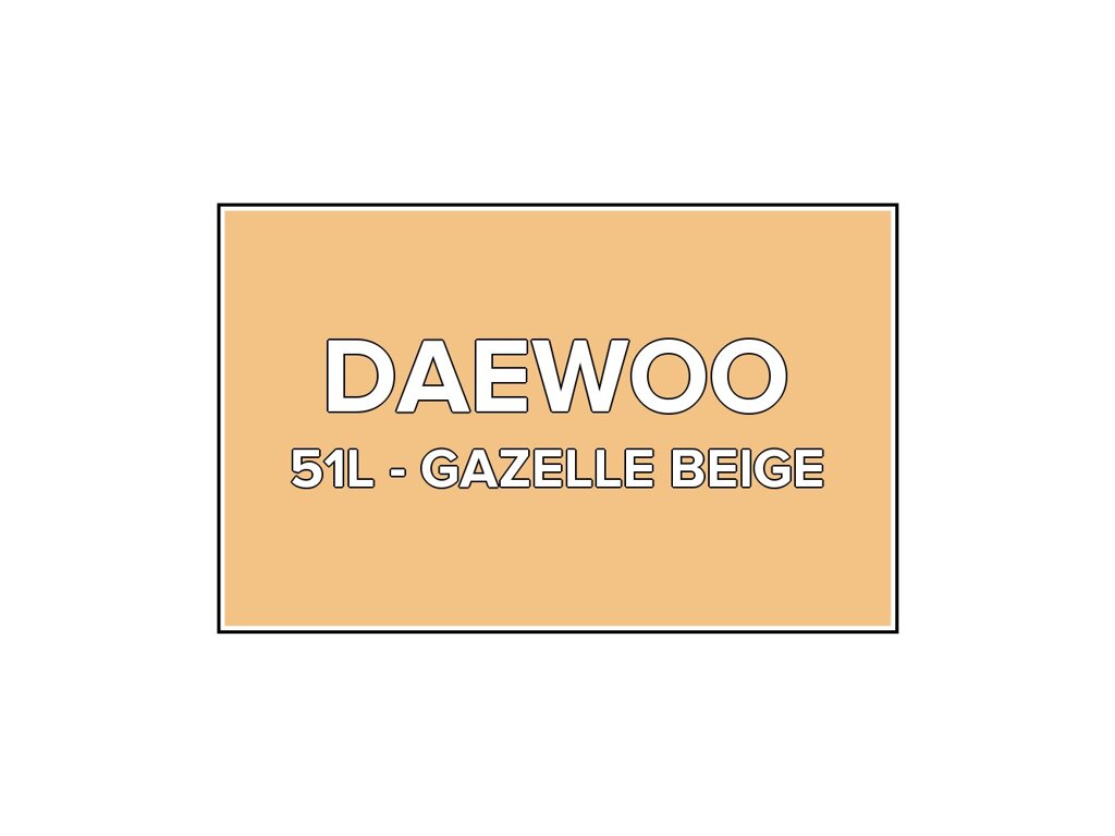 Přečíst článekDaewoo 51L Gazelle Beige farba v spreji s objemom 400 ml. Farba GAZELLE BEIGE presne zodpovedá farbe 51L, ktorá sa používala na vozidlách Daewoo v roku 1987. Farba na všetky povrchy, jednoduchá aplikácia, 100% krytie.