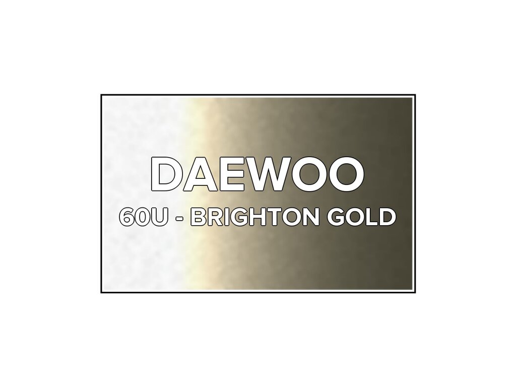 Přečíst článekŽltá metalická farba v spreji Daewoo 60U Brighton Gold s objemom 400 ml. Farba BRIGHTON GOLD presne zodpovedá autolaku 60U, ktorý sa používal na vozidlách Daewoo v rokoch 1998-2012. Farba na všetky povrchy, jednoduchá aplikácia, 100% krytie.