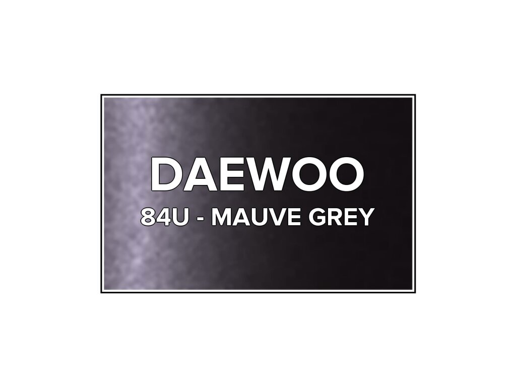 Přečíst článekDaewoo 84U Mauve Grey metalická sivá farba v spreji s objemom 400 ml. Farba MAUVE GREY presne zodpovedá autolaku 84U, ktorý sa používal na vozidlách Daewoo v rokoch 1996-2002. Farba na všetky povrchy, jednoduchá aplikácia, 100% krytie.