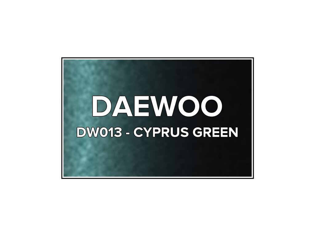 Přečíst článekZelená metalíza Daewoo DW013 Cyprus Green v 400ml spreji. Farba CYPRUS GREEN presne zodpovedá autolaku DW013, ktorý sa používal na vozidlách Daewoo v roku 1999. Farba na všetky povrchy, jednoduchá aplikácia, 100% krytie.