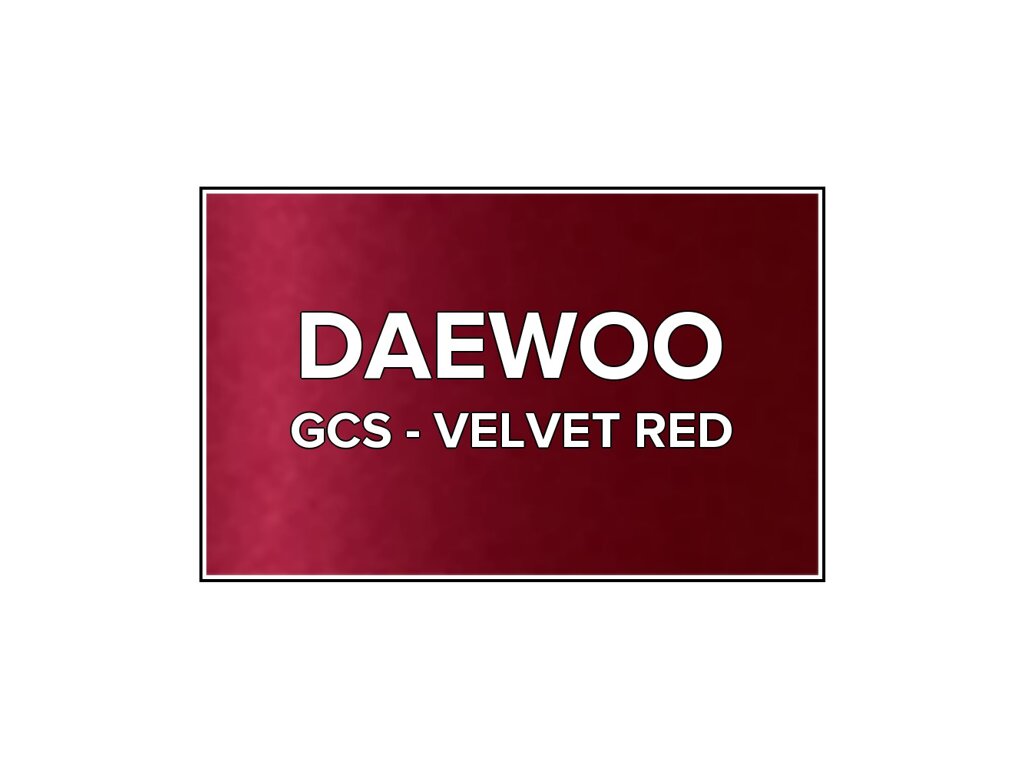 Přečíst článekČervená metalíza Daewoo GCS Velvet Red v 400 ml spreji. Farba VELVET RED presne zodpovedá autolaku GCS používanému na vozidlách Daewoo v rokoch 2008-2010. Farba na všetky povrchy, jednoduchá aplikácia, 100% krytie.
