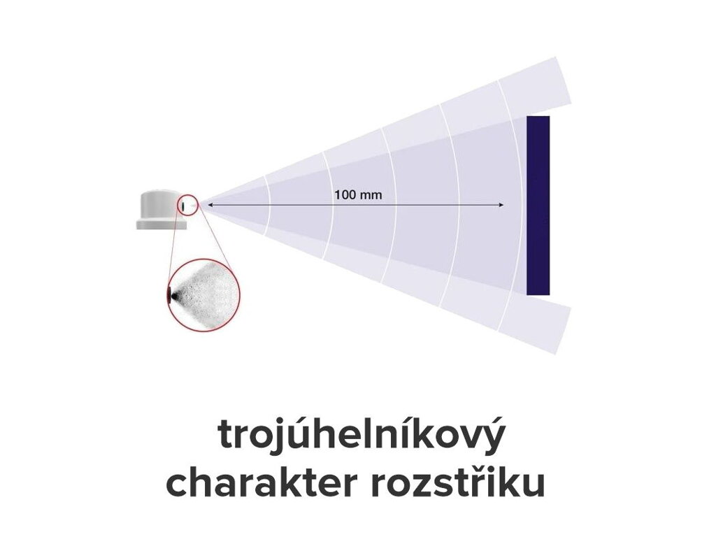 Naše spreje sú vybavené špeciálnou variabilnou tryskou, ktorá umožňuje nastaviť trojuholníkový rozprašovač farby do akejkoľvek horizontálnej alebo vertikálnej polohy.