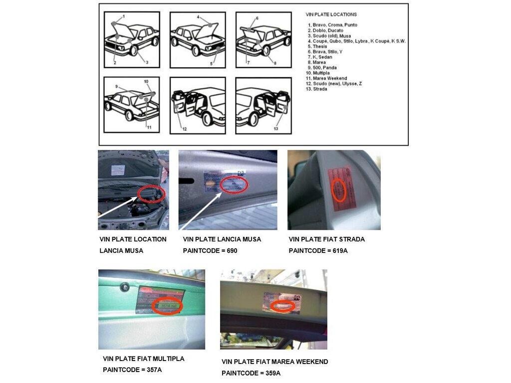 Môže sa stať, že z nejakého dôvodu farebný štítok chýba, v takom prípade sa môžete jednoducho telefonicky obrátiť na ktoréhokoľvek predajcu Fiat alebo autorizovaný servis, kde vám bezplatne poskytnú kód farby podľa čísla VIN.