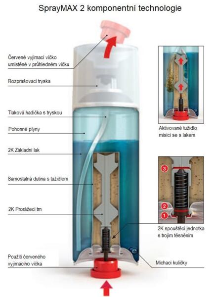 K zmiešaniu týchto zložiek dochádza až pri prvom použití spreja. Uvedené video vám poskytne prehľad o tom, ako sprej 2K aktivovať. Na aktiváciu nie je potrebné žiadne ďalšie špeciálne vybavenie, všetko potrebné je súčasťou balenia spreja. Postup aktivácie dvojzložkového spreja je zobrazený aj priamo na nádobke spreja.