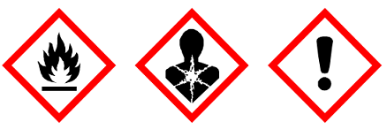 H222-H229 - extrémne horľavý aerosól. Nádoba je pod tlakom: pri zahriatí môže prasknúť.