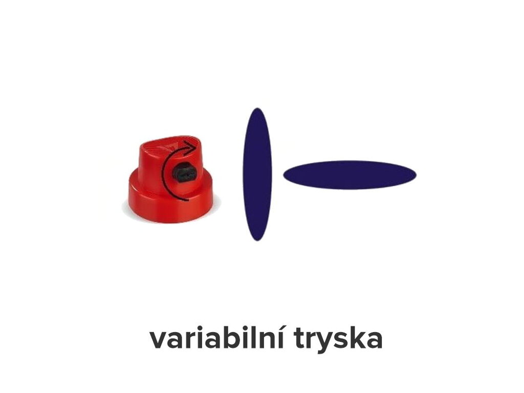 Naše spreje sú vybavené špeciálnou variabilnou tryskou, ktorá umožňuje nastaviť trojuholníkový rozprašovač farby do akejkoľvek horizontálnej alebo vertikálnej polohy.