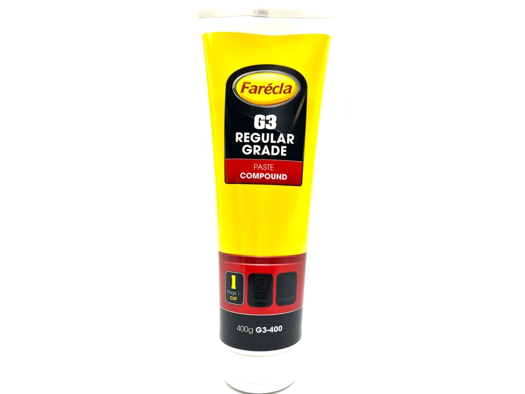 na rýchle odstránenie abrazívnych škrabancov a dosiahnutie lesku v jednom kroku. Vyznačuje sa minimálnou prašnosťou a vynikajúcou abrazívnou schopnosťou. Pasta Farecla G3 je vhodná na všetky typy autolakov.