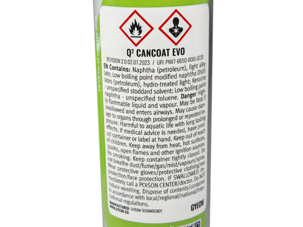 Gyeon Q² CanCoat EVO ako vysoko univerzálny a najľahšie aplikovateľný keramický náter (na báze SiO2) vo forme spreja, určený na ochranu a údržbu všetkých typov vozidiel. Je vhodný na takmer akýkoľvek povrch - výborne funguje priamo na karosérii, na plastoch, na diskoch kolies alebo dokonca na fóliách.