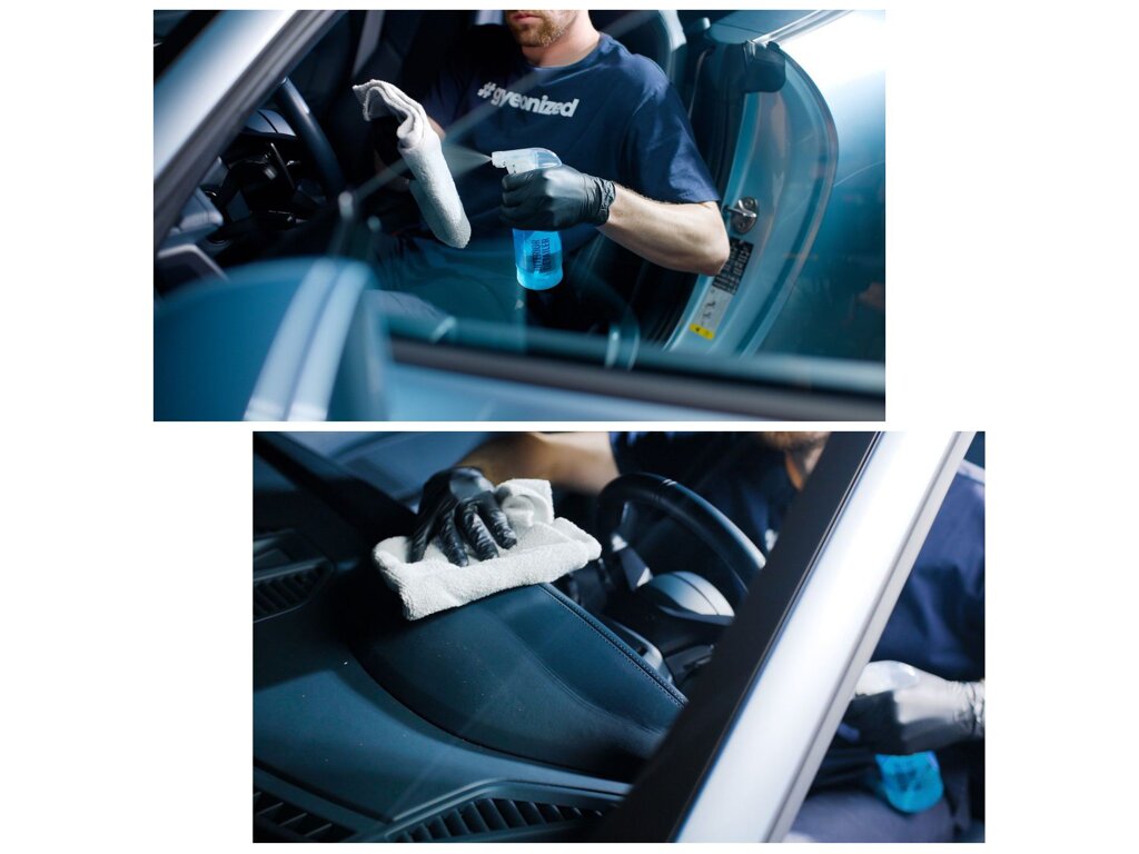 Gyeon Q2M Interior Detailer je bezpečný pre kožu, plasty, Alcantaru, textil, sklo a všetky typy interiérových obkladov. Na vyčistených povrchoch zanecháva matný, nelepivý povrch.