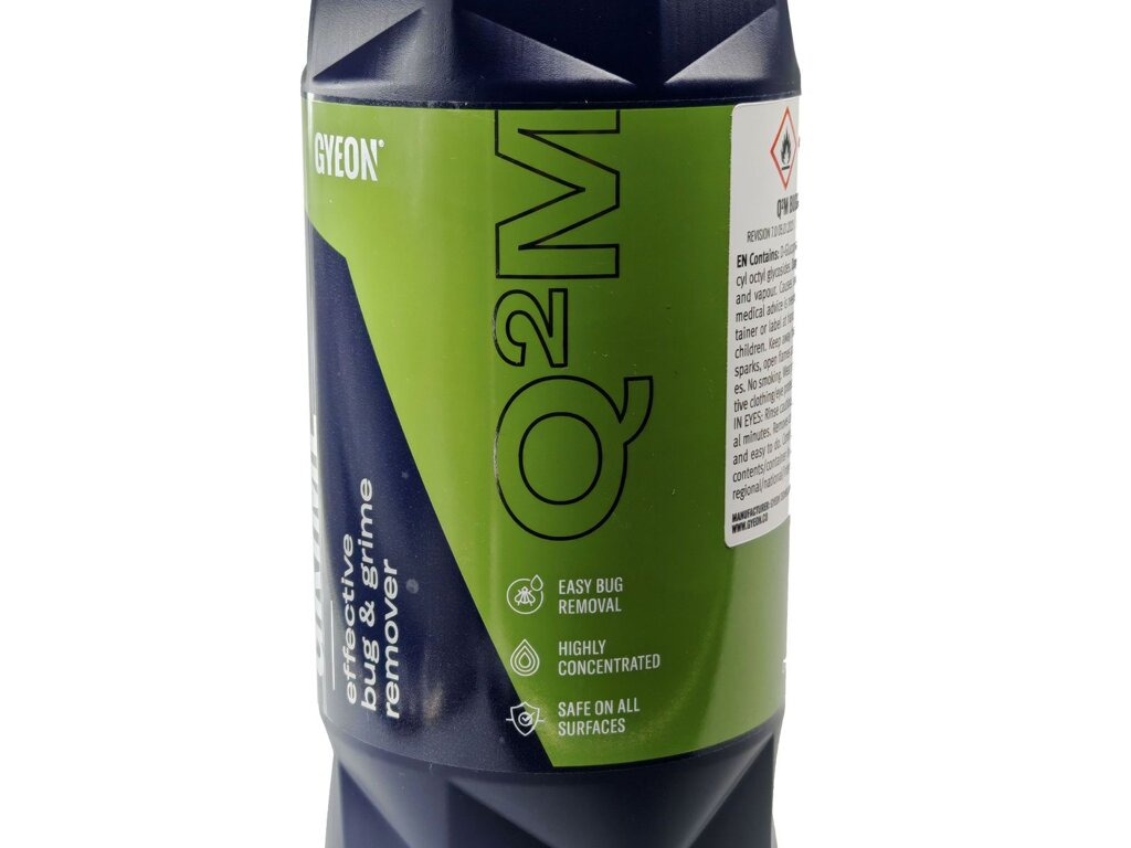 Q²M Bug&Grime je výkonný a účinný predumývací prostriedok vyvinutý špeciálne na odstraňovanie hmyzu, chrobákov a bežnej cestnej špiny. Rozpúšťa nečistoty a následne zabezpečuje bezpečné umytie bez rizika poškriabania vozidla. Hoci pôsobí veľmi rýchlo, vďaka svojmu zloženiu je bezpečný pre povrchové úpravy vozidla, dokonca aj vrátane keramickej ochrany.