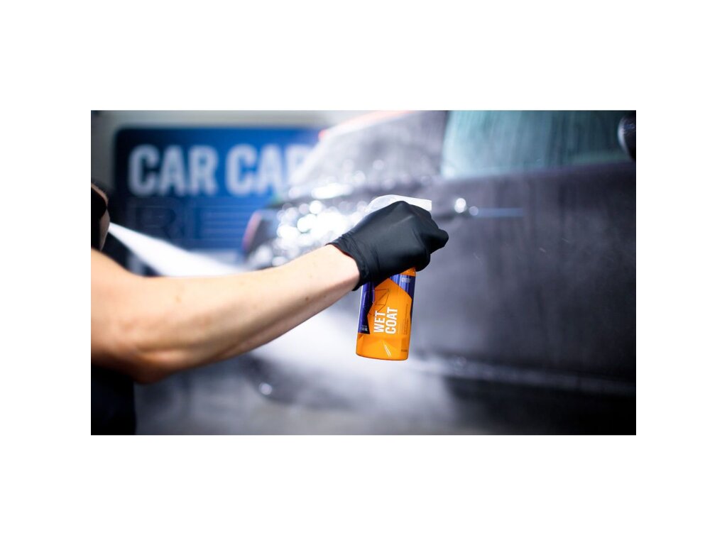 Aplikujte Q2M Wet Coat na svoje vozidlo ako záverečnú fázu detailného ošetrenia. Na ešte mokré auto po poslednom umytí nastriekajte 2 až 3 vrstvy prípravku a ihneď opláchnite prúdom vody.