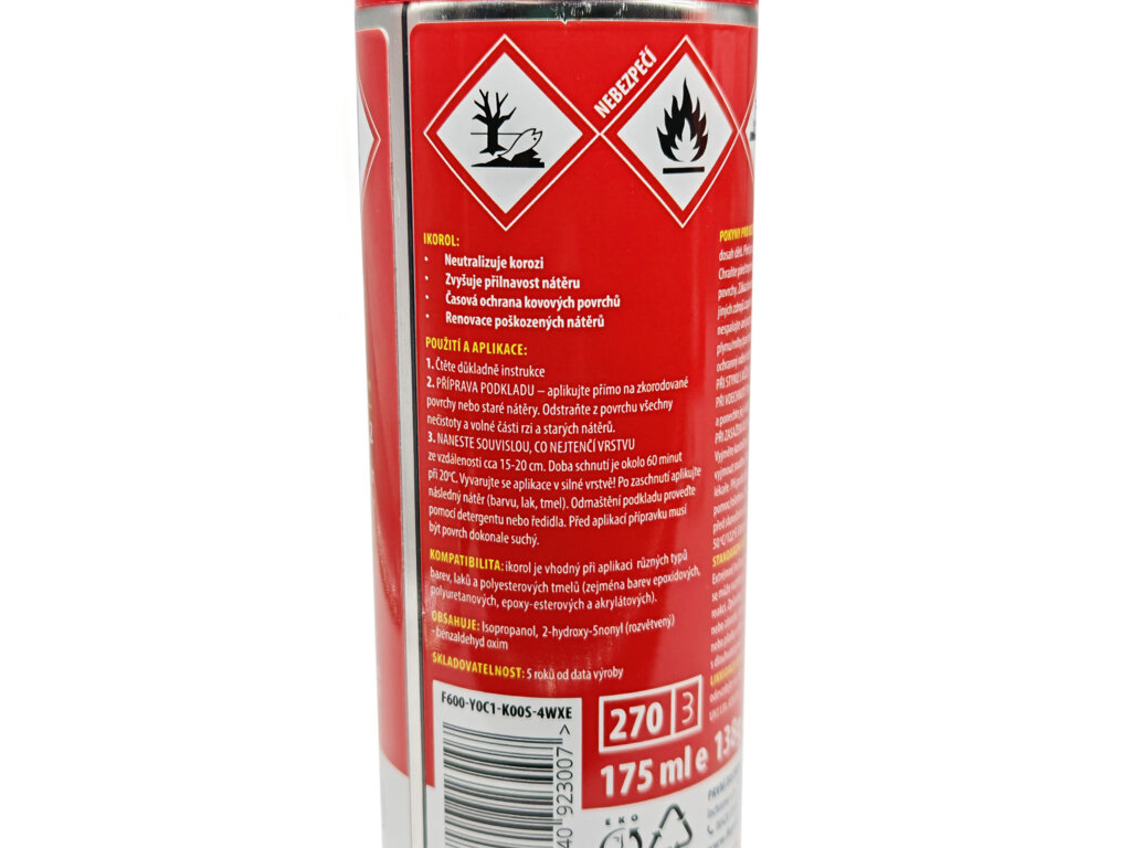 Rýchloschnúci neutralizátor hrdze Ikorol je ideálnou voľbou, keď potrebujete rýchle a kvalitné ošetrenie hrdze. Ikorol sa nemôže používať s dvojzložkovým tmelom.