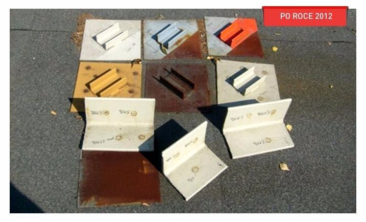 Vzorky boli natreté jednou vrstvou odstraňovača Ikorol a po 1 hodine boli aplikované vyššie uvedené náterové systémy. Po vytvrdnutí (21 dní) boli vzorky vystavené poveternostným vplyvom počas 14 až 48 mesiacov.