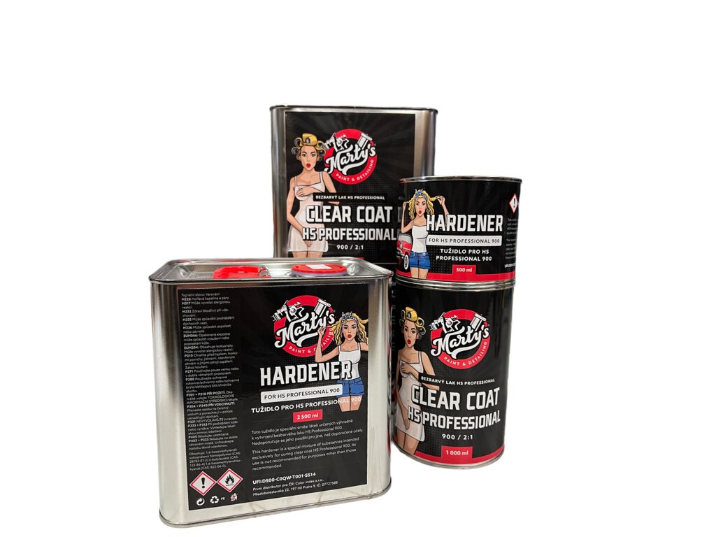 Prémiový dvojzložkový bezfarebný lak Marty's HS Professional 900 pre striekacie pištole zodpovedá najvyššiemu štandardu High Solid a vyznačuje sa veľmi vysokým obsahom pevných látok najvyššej kvality. Výsledný povrch laku je tvrdý, odolný proti poškriabaniu a poveternostným vplyvom , odolný proti UV žiareniu a proti odlupovaniu od odletujúcich kamienkov.