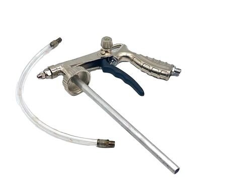 Striekacia pištoľ na ochranu dutín a podvozkov. Balenie obsahuje 0,3 m hadicu s rozprašovacím hrotom na jednoduché zavádzanie materiálov do dutín a neprístupných miest. Má regulačný ventil na nastavenie množstva vzduchu.