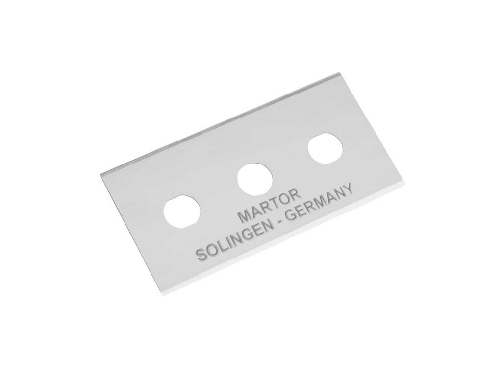 Balenie 10 kvalitných náhradných čepelí pre nôž Martor. Čepele sú vyrobené z kvalitnej ocele v nemeckom Solingene a dodávajú sa v bezpečnostnej plastovej škatuľke.