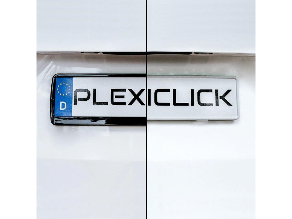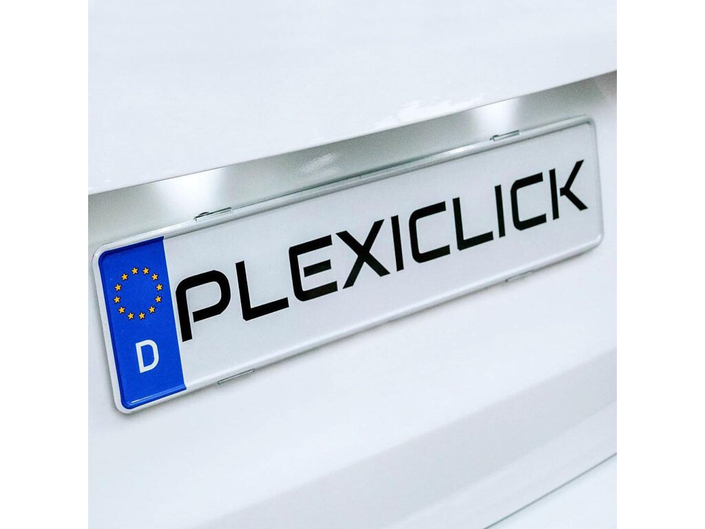 Rôzne krajiny majú rôzne veľkosti registračných značiek, a preto nemecký výrobca vyrába držiak Plexiclick v rôznych veľkostiach. My ponúkame Plexiclick V1: model 110 mm, ktorý je určený pre tabuľky s výškou 110 až 111 mm.