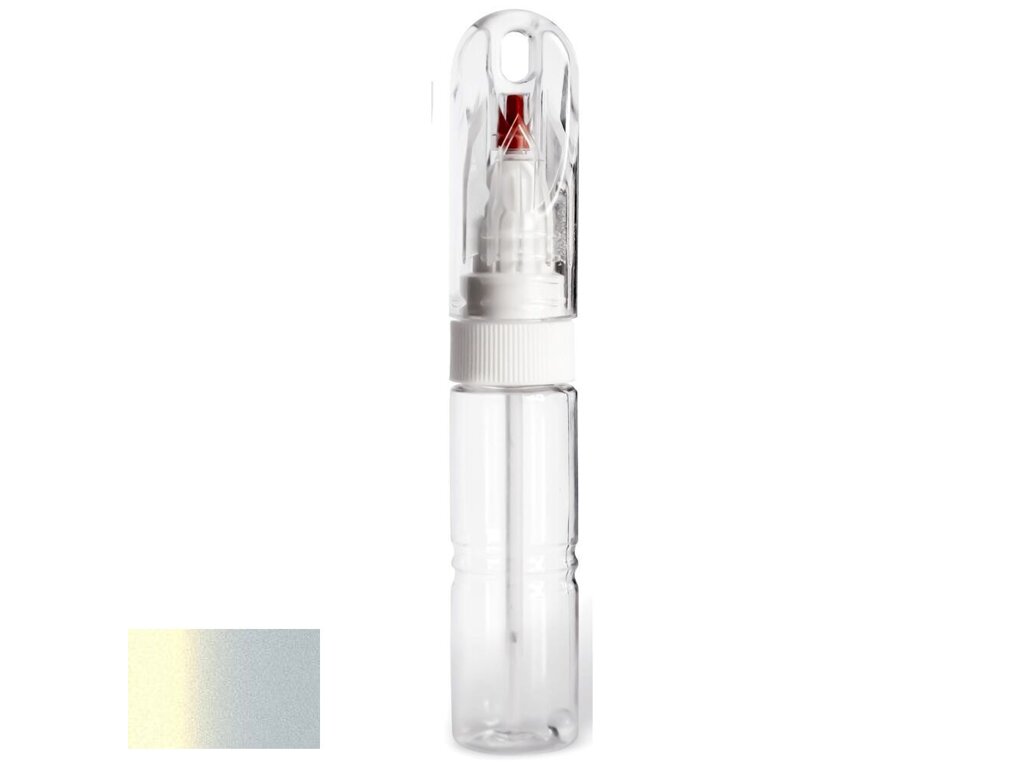 Samotná fľaštička má veľmi kompaktné rozmery, porovnateľné napríklad s hrubším fixom. Jej priehľadné telo obsahuje 20 ml farby na auto, namiešanej na presný odtieň podľa kódu výrobcu vášho vozidla. Vďaka špeciálnemu zloženiu farby je farba po zaschnutí lesklá a nie je potrebné ju prelakovať bezfarebným lakom bez ohľadu na to, či ide o klasický odtieň alebo metalízu.
