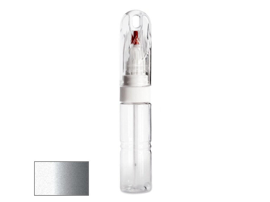 Samotná fľaštička má veľmi kompaktné rozmery, porovnateľné napríklad s hrubším fixom. Jej priehľadné telo obsahuje 20 ml farby na auto, namiešanej na presný odtieň podľa kódu výrobcu vášho vozidla. Vďaka špeciálnemu zloženiu farby je farba po zaschnutí lesklá a nie je potrebné ju prelakovať bezfarebným lakom bez ohľadu na to, či ide o klasický odtieň alebo metalízu.
