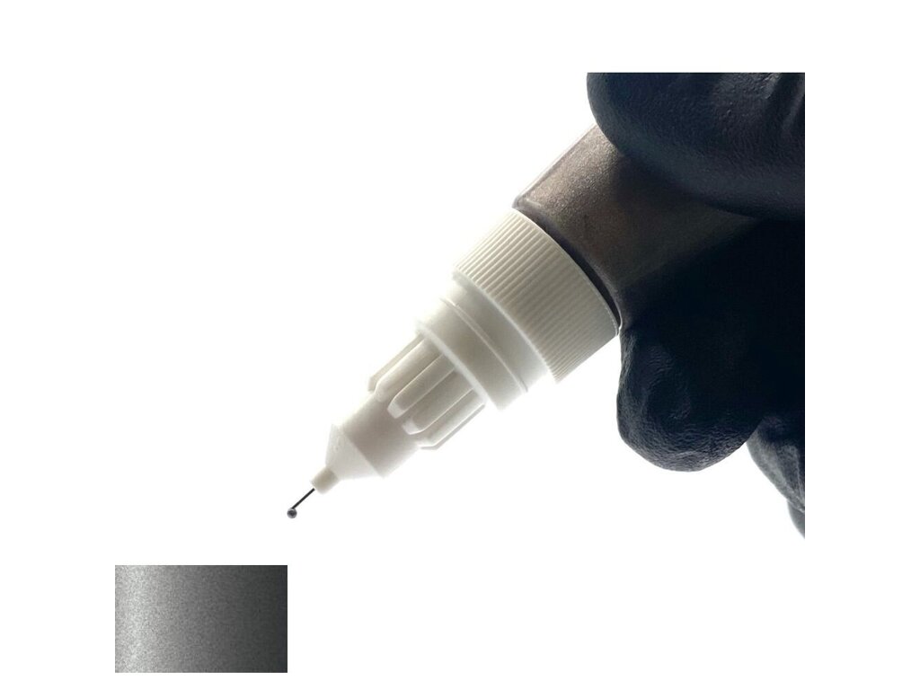 Samotná fľaštička má veľmi kompaktné rozmery, porovnateľné napríklad s hrubším fixom. Jej priehľadné telo obsahuje 20 ml farby na auto, namiešanej na presný odtieň podľa kódu výrobcu vášho vozidla. Vďaka špeciálnemu zloženiu farby je farba po zaschnutí lesklá a nie je potrebné ju prelakovať bezfarebným lakom bez ohľadu na to, či ide o klasický odtieň alebo metalízu.