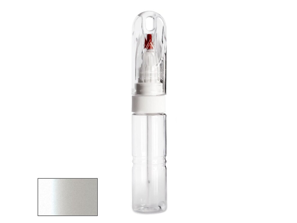 Samotná fľaštička má veľmi kompaktné rozmery, porovnateľné napríklad s hrubším fixom. Jej priehľadné telo obsahuje 20 ml farby na auto, namiešanej na presný odtieň podľa kódu výrobcu vášho vozidla. Vďaka špeciálnemu zloženiu farby je farba po zaschnutí lesklá a nie je potrebné ju prelakovať bezfarebným lakom bez ohľadu na to, či ide o klasický odtieň alebo metalízu.