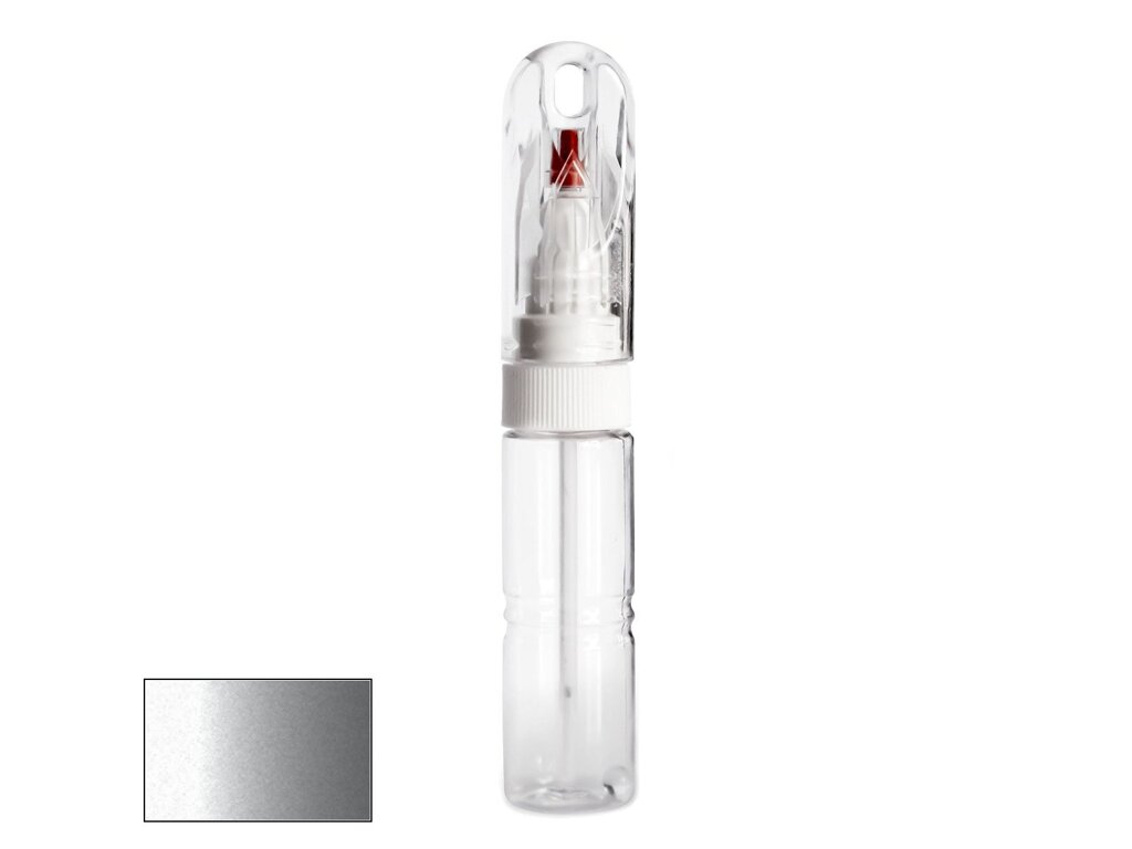 Samotná fľaštička má veľmi kompaktné rozmery, porovnateľné napríklad s hrubším fixom. Jej priehľadné telo obsahuje 20 ml farby na auto, namiešanej na presný odtieň podľa kódu výrobcu vášho vozidla. Vďaka špeciálnemu zloženiu farby je farba po zaschnutí lesklá a nie je potrebné ju prelakovať bezfarebným lakom bez ohľadu na to, či ide o klasický odtieň alebo metalízu.